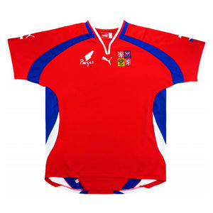 {"id":7288365154357,"title":"Czech Republic 2000-02 Home Shirt (Mint)","handle":"czech-republic-2000-02-home-shirt-mint-275754","description":"\u003cp\u003e\u003cb\u003eMint condition - \u003c\/b\u003eThis shirt shows no signs of wear, it has vibrant colours, good transfers, no apparent stretching and there is no bobbles or stitching issues. This shirt is in mint condition overall. \u003c\/p\u003e\u003cp\u003eThe Czech Republic 2004-05 Home Shirt as worn by players such as Tyce, Galasek, Bolf, Nedved and Baros as the team reached the Semi Finals of the 2004 UEFA European Championships.\u003c\/p\u003e\u003cp\u003eManufactured by Puma.\u003c\/p\u003e\u003cp\u003e \u003c\/p\u003e\u003cp\u003e \u003c\/p\u003e","published_at":"2023-11-17T20:50:10+00:00","created_at":"2023-11-17T20:50:10+00:00","vendor":"Puma","type":"Product - Football Shirts","tags":["2000-2002","continent-Europe (UEFA)","Czech Republic","Europe (UEFA)","feed-agegroup-adult","feed-cl0-2000-2002","feed-cl1-Czech Republic","feed-cl4-Europe (UEFA)","feed-color-Red","feed-cond-used","feed-gender-Male","feed-gpc-1111","feed-material-polyester","feed-sizetype-regular","national team","Not Special","Personalized_Product","season-2000-2002","Short Sleeve","sleevelength-Short Sleeve","Team_Czech Republic","team_type-national team"],"price":5900,"price_min":5900,"price_max":5900,"available":false,"price_varies":false,"compare_at_price":null,"compare_at_price_min":0,"compare_at_price_max":0,"compare_at_price_varies":false,"variants":[{"id":42726252380213,"title":"XL Adults","option1":"XL Adults","option2":null,"option3":null,"sku":"p-275754-3170","requires_shipping":true,"taxable":true,"featured_image":null,"available":false,"name":"Czech Republic 2000-02 Home Shirt (Mint) - XL Adults","public_title":"XL Adults","options":["XL Adults"],"price":5900,"weight":0,"compare_at_price":null,"inventory_management":"shopify","barcode":"5063230131666","requires_selling_plan":false,"selling_plan_allocations":[]}],"images":["\/\/classicfootballkit.de\/cdn\/shop\/files\/1687179138_czech-republic-2000-2002-home-shirt.jpg?v=1700254215","\/\/classicfootballkit.de\/cdn\/shop\/files\/1687179146_czech-republic-2000-2002-home-shirt-back.jpg?v=1700315144"],"featured_image":"\/\/classicfootballkit.de\/cdn\/shop\/files\/1687179138_czech-republic-2000-2002-home-shirt.jpg?v=1700254215","options":["Size"],"media":[{"alt":"Czech Republic 2000-02 Home Shirt (Mint)_0","id":26574874673205,"position":1,"preview_image":{"aspect_ratio":1.0,"height":1000,"width":1000,"src":"\/\/classicfootballkit.de\/cdn\/shop\/files\/1687179138_czech-republic-2000-2002-home-shirt.jpg?v=1700254215"},"aspect_ratio":1.0,"height":1000,"media_type":"image","src":"\/\/classicfootballkit.de\/cdn\/shop\/files\/1687179138_czech-republic-2000-2002-home-shirt.jpg?v=1700254215","width":1000},{"alt":"Czech Republic 2000-02 Home Shirt (Mint)_1","id":26576253222965,"position":2,"preview_image":{"aspect_ratio":1.0,"height":1000,"width":1000,"src":"\/\/classicfootballkit.de\/cdn\/shop\/files\/1687179146_czech-republic-2000-2002-home-shirt-back.jpg?v=1700315144"},"aspect_ratio":1.0,"height":1000,"media_type":"image","src":"\/\/classicfootballkit.de\/cdn\/shop\/files\/1687179146_czech-republic-2000-2002-home-shirt-back.jpg?v=1700315144","width":1000}],"requires_selling_plan":false,"selling_plan_groups":[],"content":"\u003cp\u003e\u003cb\u003eMint condition - \u003c\/b\u003eThis shirt shows no signs of wear, it has vibrant colours, good transfers, no apparent stretching and there is no bobbles or stitching issues. This shirt is in mint condition overall. \u003c\/p\u003e\u003cp\u003eThe Czech Republic 2004-05 Home Shirt as worn by players such as Tyce, Galasek, Bolf, Nedved and Baros as the team reached the Semi Finals of the 2004 UEFA European Championships.\u003c\/p\u003e\u003cp\u003eManufactured by Puma.\u003c\/p\u003e\u003cp\u003e \u003c\/p\u003e\u003cp\u003e \u003c\/p\u003e"}