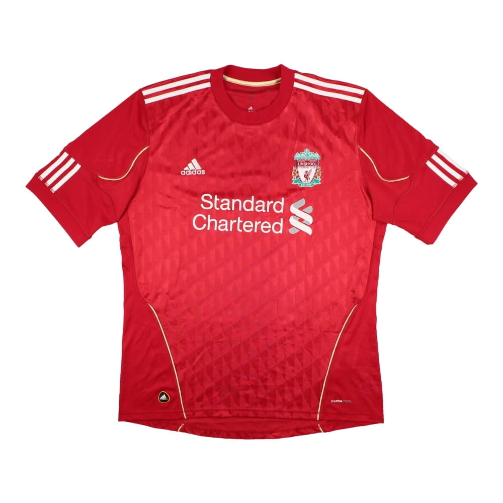 {"id":7288316624949,"title":"Liverpool 2010-12 Home Shirt (Gerrard #8) ((Good) L)","handle":"liverpool-2010-12-home-shirt-gerrard-8-good-l-269845","description":"\u003cp\u003eGood condition - This shirt has noticable cracking in front sponsor, some wear on lower left side but is in otherwise good condition. The badges are stitched, the name and number looks good and the material feels nice with bright colours.\u003c\/p\u003e\u003cp\u003eThe Liverpool 2010-12 Home Shirt (Gerrard #8) as worn by players such as Gerrard, Suarez, Carragher and Henderson as the team finished 6th in the Premier League in 2010-11 and 8th the following season as well as winning the League Cup.\u003c\/p\u003e\u003cp\u003eManufactured by Adidas.\u003c\/p\u003e","published_at":"2023-11-17T20:18:30+00:00","created_at":"2023-11-17T20:18:30+00:00","vendor":"Adidas","type":"Product - Football Shirts","tags":["2010-2011","club team","continent-European Clubs","English Premier League","European Clubs","feed-agegroup-adult","feed-cl0-2010-2011","feed-cl1-Liverpool","feed-cl2-Steven Gerrard","feed-cl3-English Premier League","feed-cl4-European Clubs","feed-color-Red","feed-cond-used","feed-gender-Male","feed-gpc-1111","feed-material-polyester","feed-sizetype-regular","league-English Premier League","Liverpool","Not Special","Personalized_Product","player_name-Steven Gerrard","season-2010-2011","Short Sleeve","sleevelength-Short Sleeve","Steven Gerrard","Team_Liverpool","team_type-club team"],"price":7000,"price_min":7000,"price_max":7000,"available":false,"price_varies":false,"compare_at_price":null,"compare_at_price_min":0,"compare_at_price_max":0,"compare_at_price_varies":false,"variants":[{"id":42726188679221,"title":"Large 42-44\" Chest","option1":"Large 42-44\" Chest","option2":null,"option3":null,"sku":"p-269845-2645","requires_shipping":true,"taxable":true,"featured_image":null,"available":false,"name":"Liverpool 2010-12 Home Shirt (Gerrard #8) ((Good) L) - Large 42-44\" Chest","public_title":"Large 42-44\" Chest","options":["Large 42-44\" Chest"],"price":7000,"weight":0,"compare_at_price":null,"inventory_management":"shopify","barcode":"5063230288940","requires_selling_plan":false,"selling_plan_allocations":[]}],"images":["\/\/classicfootballkit.de\/cdn\/shop\/files\/1669066414_lpool-10-12-home-back.jpg?v=1700252314","\/\/classicfootballkit.de\/cdn\/shop\/files\/1669066417_lpool-10-12-home.jpg?v=1700313354"],"featured_image":"\/\/classicfootballkit.de\/cdn\/shop\/files\/1669066414_lpool-10-12-home-back.jpg?v=1700252314","options":["Size"],"media":[{"alt":"Liverpool 2010-12 Home Shirt (Gerrard #8) ((Good) L)_0","id":26574803959861,"position":1,"preview_image":{"aspect_ratio":1.0,"height":1000,"width":1000,"src":"\/\/classicfootballkit.de\/cdn\/shop\/files\/1669066414_lpool-10-12-home-back.jpg?v=1700252314"},"aspect_ratio":1.0,"height":1000,"media_type":"image","src":"\/\/classicfootballkit.de\/cdn\/shop\/files\/1669066414_lpool-10-12-home-back.jpg?v=1700252314","width":1000},{"alt":"Liverpool 2010-12 Home Shirt (Gerrard #8) ((Good) L)_1","id":26576182018101,"position":2,"preview_image":{"aspect_ratio":1.0,"height":1000,"width":1000,"src":"\/\/classicfootballkit.de\/cdn\/shop\/files\/1669066417_lpool-10-12-home.jpg?v=1700313354"},"aspect_ratio":1.0,"height":1000,"media_type":"image","src":"\/\/classicfootballkit.de\/cdn\/shop\/files\/1669066417_lpool-10-12-home.jpg?v=1700313354","width":1000}],"requires_selling_plan":false,"selling_plan_groups":[],"content":"\u003cp\u003eGood condition - This shirt has noticable cracking in front sponsor, some wear on lower left side but is in otherwise good condition. The badges are stitched, the name and number looks good and the material feels nice with bright colours.\u003c\/p\u003e\u003cp\u003eThe Liverpool 2010-12 Home Shirt (Gerrard #8) as worn by players such as Gerrard, Suarez, Carragher and Henderson as the team finished 6th in the Premier League in 2010-11 and 8th the following season as well as winning the League Cup.\u003c\/p\u003e\u003cp\u003eManufactured by Adidas.\u003c\/p\u003e"}